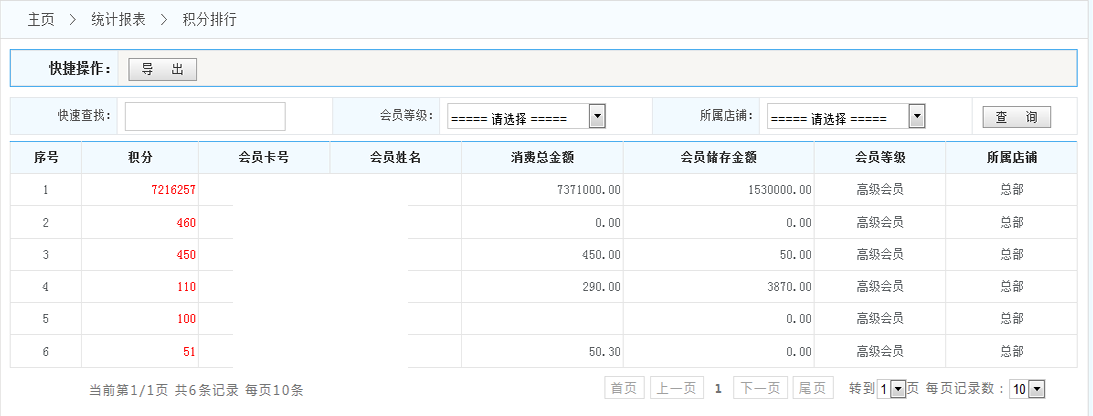 積分排行統(tǒng)計:查看會員積分排行情況