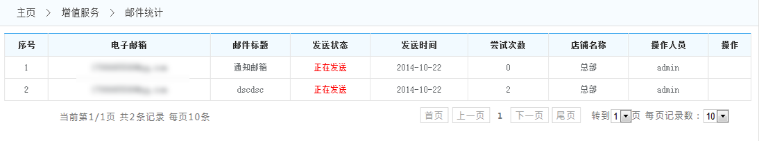 郵件統(tǒng)計(jì): 列表:在郵件列表中的 發(fā)送狀態(tài)一欄會(huì)提示發(fā)送的狀態(tài),在發(fā)送次數(shù)一欄 會(huì)標(biāo)記發(fā)送次數(shù)(系統(tǒng)會(huì)自動(dòng)發(fā)送5次 直到發(fā)送成功為止,如果5此都不成功則此條郵件發(fā)送失敗)