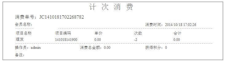 如果有勾選打印小票,則在點(diǎn)擊結(jié)算消費(fèi)成功后,將會(huì)打印出此次計(jì)次消費(fèi)的詳細(xì)信息;