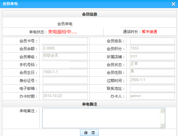 五通一卡通云會員管理系統(tǒng)來電記錄