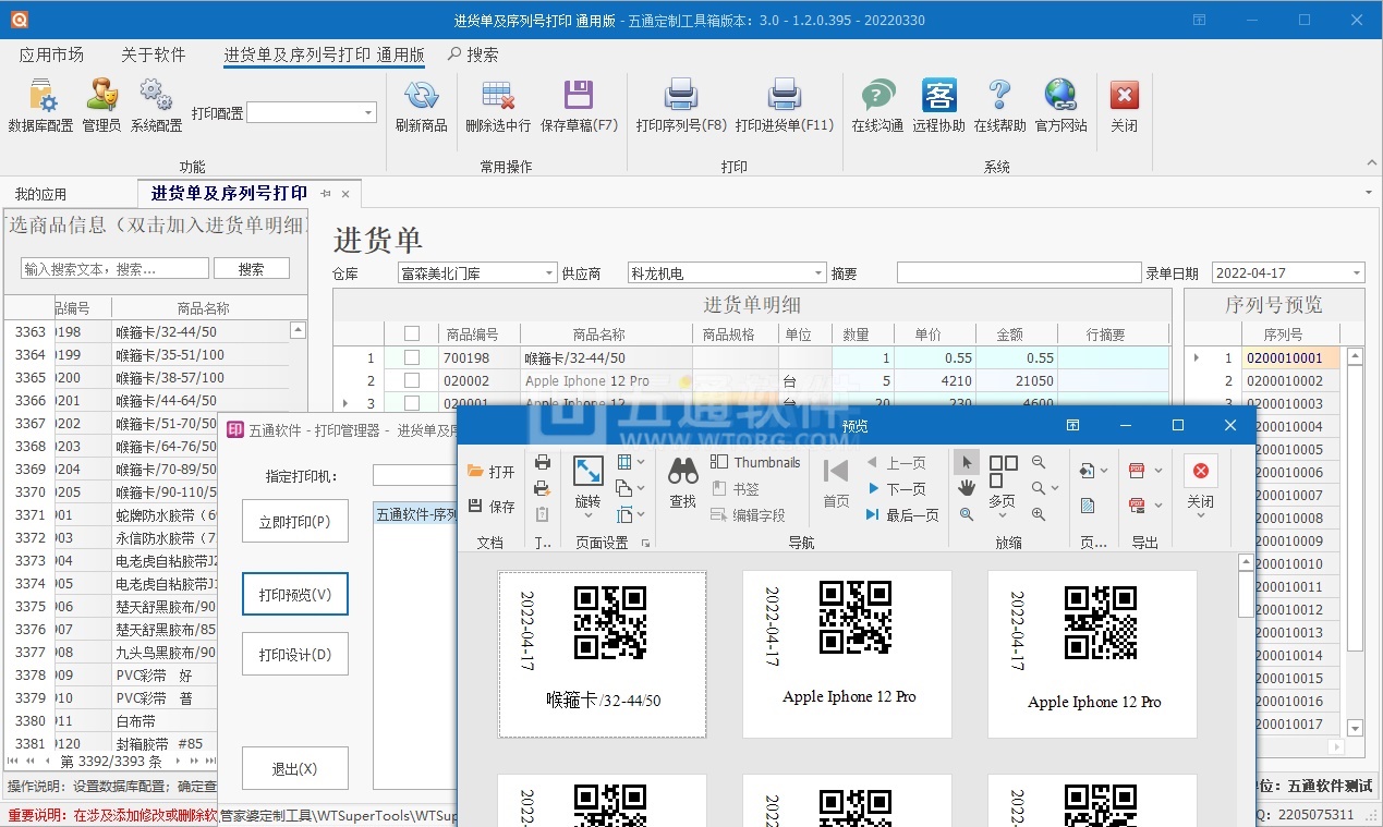 【五通定制管家婆輝煌應用】序列號批量生成打印應用,填寫數量自動生成對應序列號,及序列號批量打印